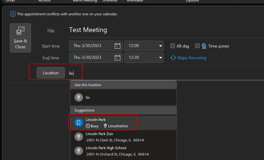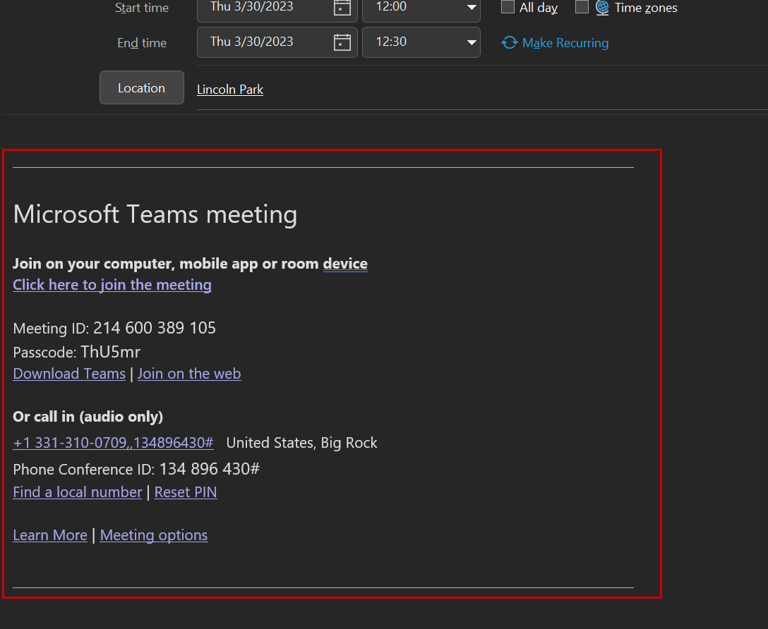 You’ll also need to make sure that you select to make it a “Teams Meeting”: