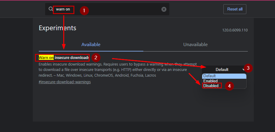 If you're trying to download a file, from Star, for example, and it's giving you an error message saying "Insecure Download Blocked", you can either press "Keep" to proceed with the download as a one time fix, or change the default so that stops happening.