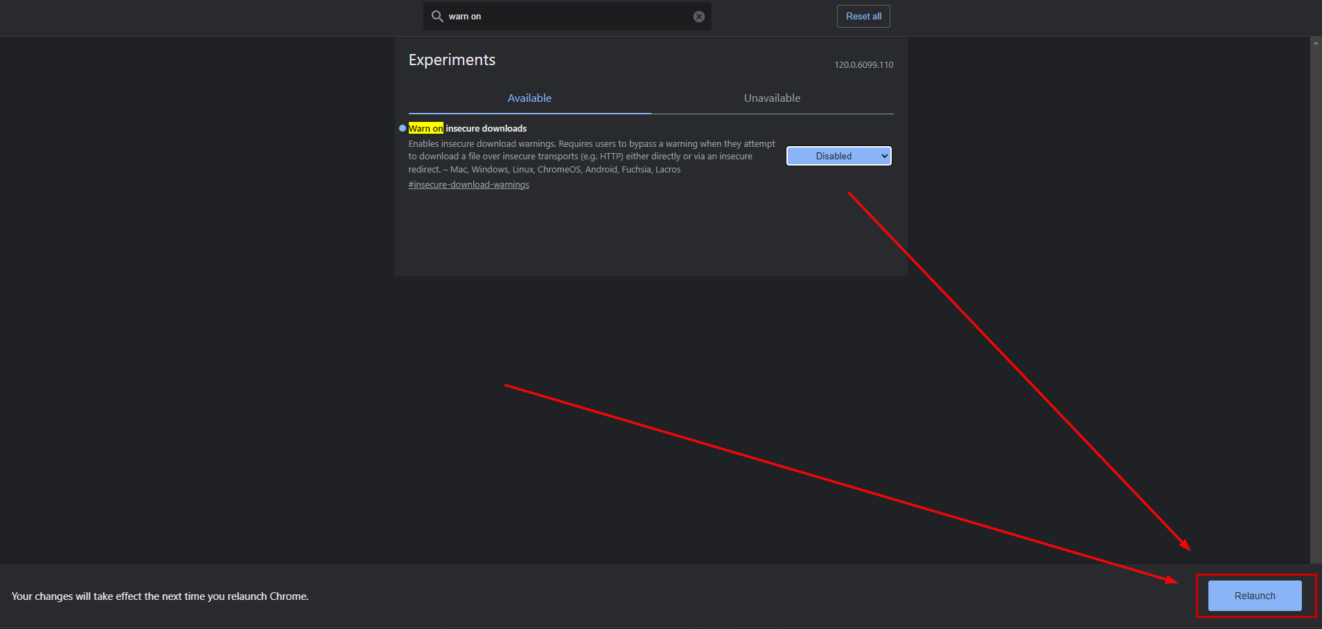 If you don't see that, you may need to search for Insecure origins treated as secure