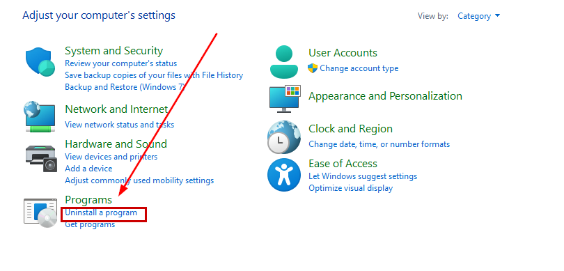 Click Uninstall a program