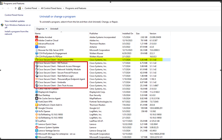 Look for Cisco Secure Client - AnyConnect VPN