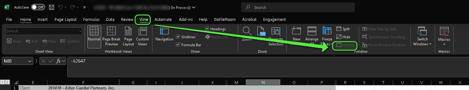 - Click Unhide